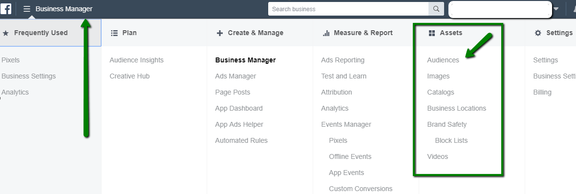 - You have to be logged in to Facebook Business Manager to do this. Go to your Ad Account> Business Manager and under Assets, click Audiences